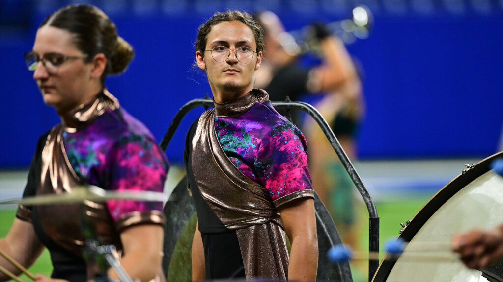 “We never got the chance in high school to share the field, because I graduated before he even stepped on it,” said Daniel Povis (trumpet), performed in 2025 with his brother, Andrew (front ensemble). “And now, we get to come and do one of the most fun activities every single weekend.”